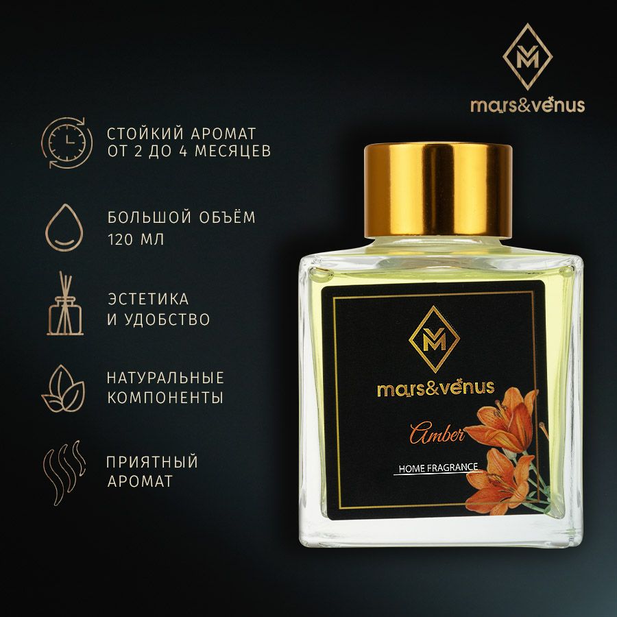 Роскошь и красота тёплого древесного аромата янтаря нашего интерьерного диффузора Mars&Venus Amber будет окружать Вас и дарить чувство спокойствия и комфорта продолжительное время, создавая по-настоящему уютную атмосферу.
