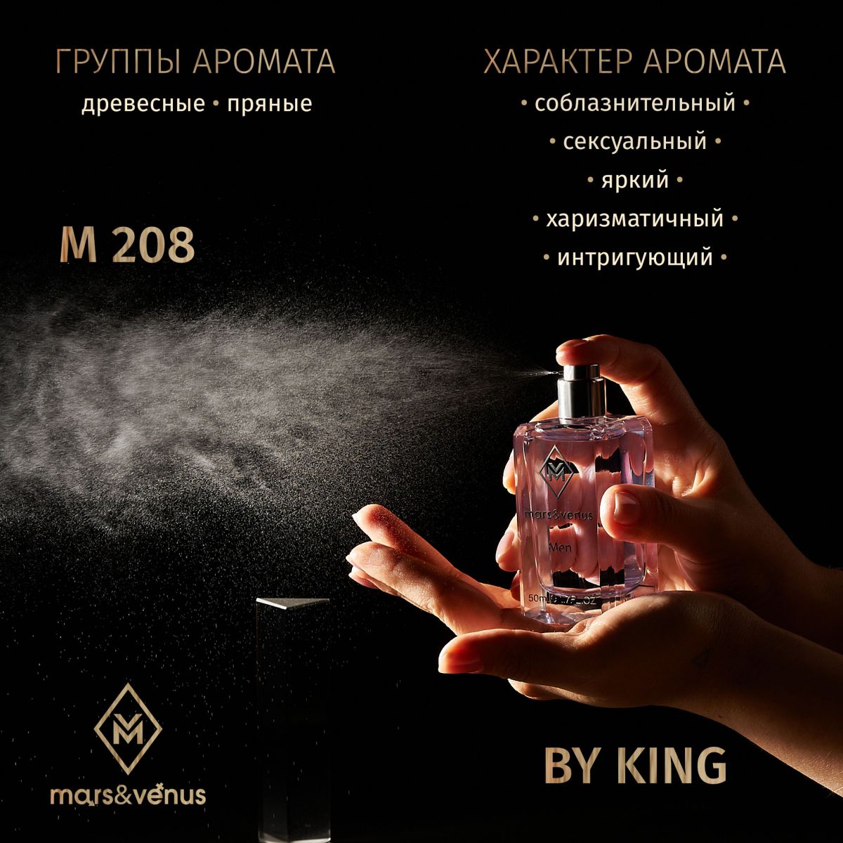 Парфюмерная вода M 208 Mars-Venus By King предназначена для тех, кто уважительно относится к традициям, но всегда открыт новым перспективам и волнующим впечатлениям. В каждой капле этого парфюма звучит история стиля, утонченности и неповторимости.