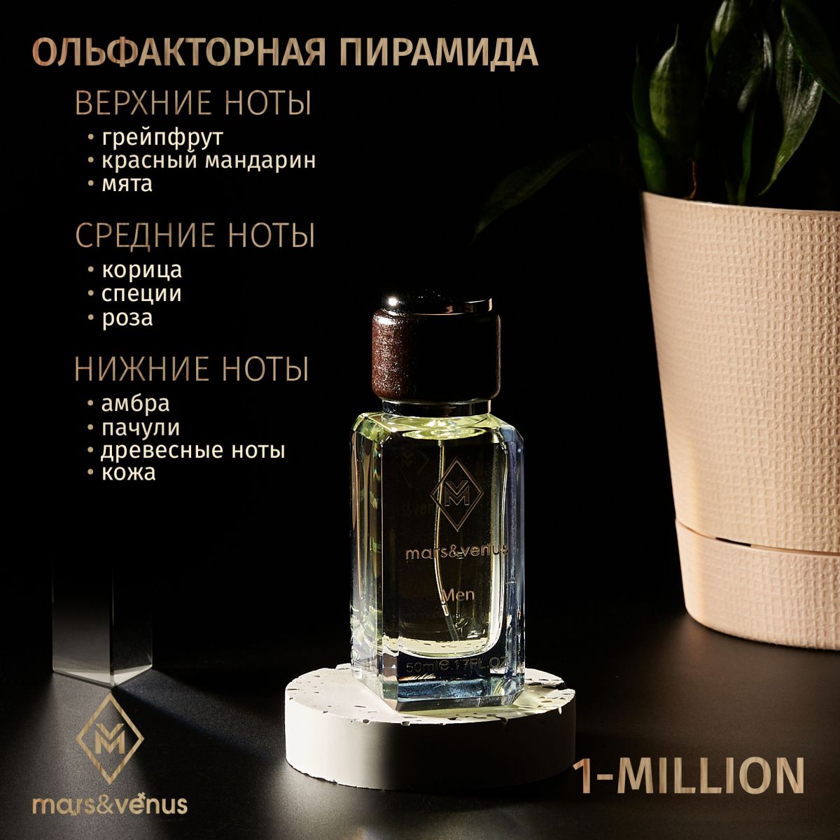 Парфюмированная вода Mars-Venus M 217 1-Million – аромат для элегантных и экстравагантных мужчин с характером, которые знают чего хотят от жизни. Это чудесная смесь, в которой много слоев и измерений, что делает этот парфюм очень запоминающимся и комплиментарным.