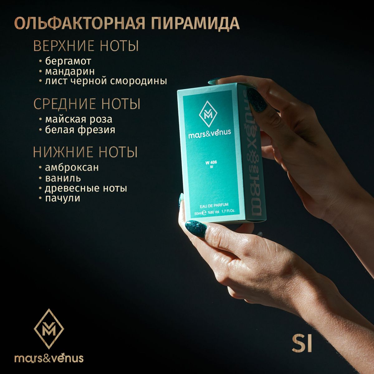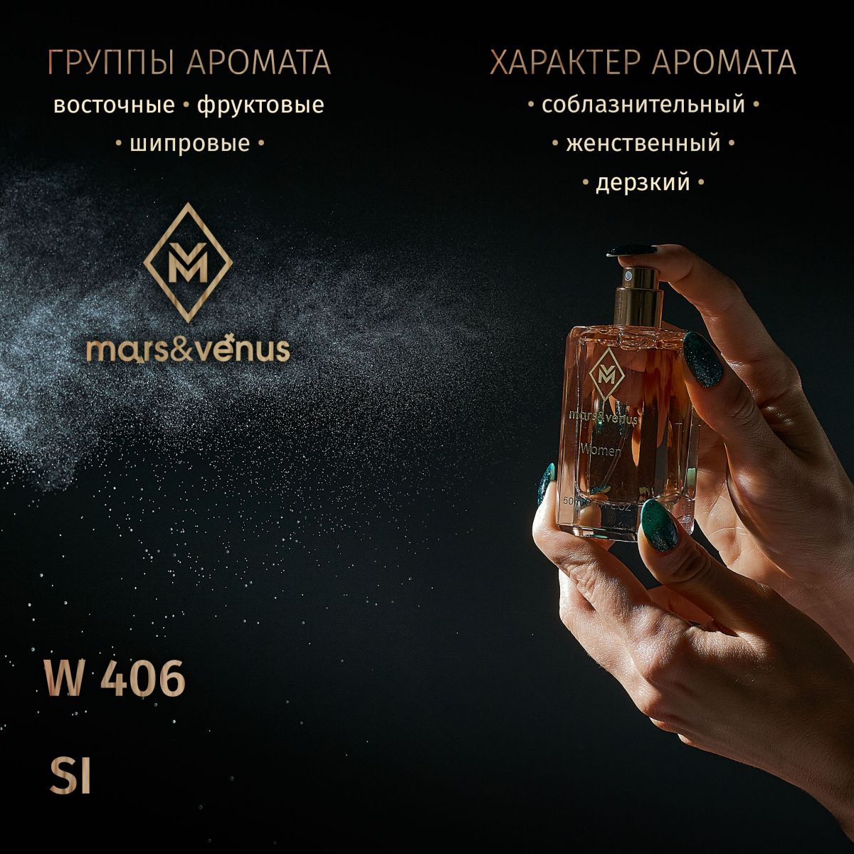 Парфюмерная вода Mars-Venus W406 Si — это утонченный аромат, созданный для воплощения чувственности и элегантности.
