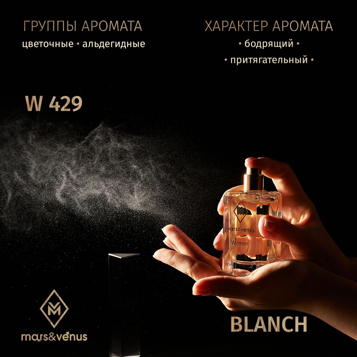 Парфюмерная вода W 429 Mars&Venus Blanch дарит позитивную энергию и подходит для повседневного использования в офисе, на прогулке или встречи с друзьями. Умеренный шлейф духов делает их звучание особенно замечательным в теплое время года, но в некоторых случаях они подойдут и зимой.