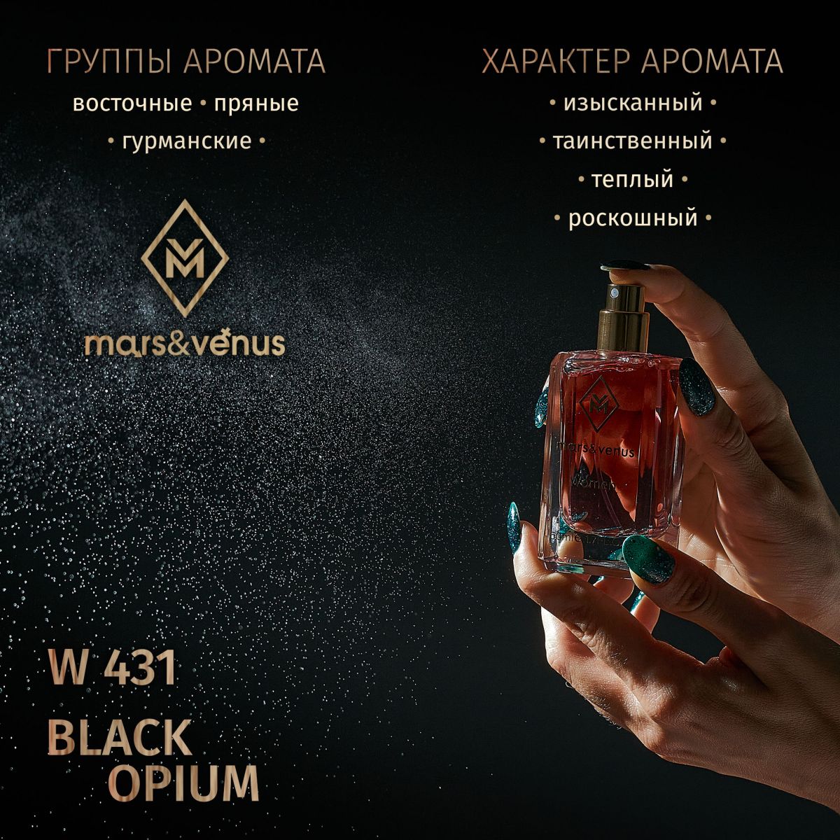 W 431 Mars&Venus Black Opium один из самых сексуальных женских ароматов с насыщенным и плотным шлейфом, поэтому куда бы вы ни пошли, вы оставите за собой сплошной бесподобный след.